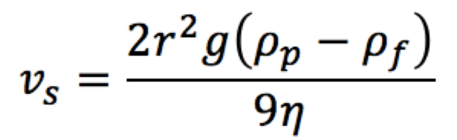 pp – pf är skillnaden i densitet mellan partikel och fluid