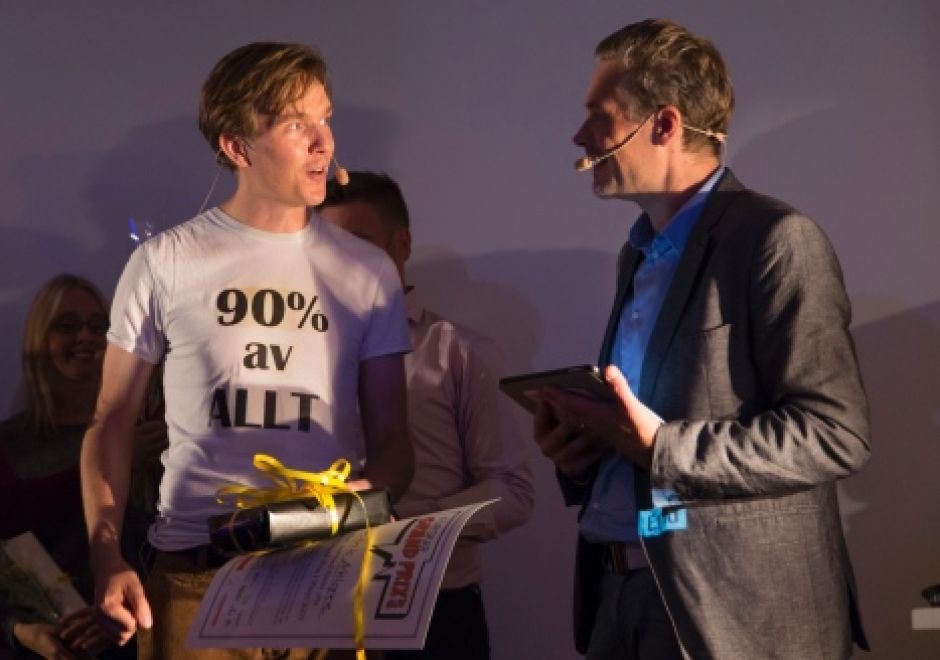 Tävlingen ägde rum förra fredagen inför en stor publik och en välrénommerad jury. Fredrik Ahlgren hade fyra medtävlare från olika forskningsområden och när juryn hade fattat sitt beslut stod han som vinnare. Fredrik höll en presentation om hur fartygs elanvändning skulle kunna komma från återvinning av värme.