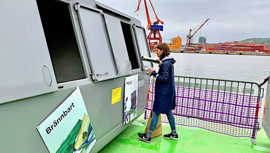 Återvinningspråmen innehåller fyra stycken containrar om 28n kubik. När de är fyllda körs pråmen till Marieholm där grovsopor sorteras för att transporteras vidare till återvinning eller återbruk. Pråmen tar emot det mesta men inte tyngre material, jord eller trädgårdsavfall. se