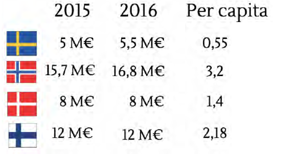Som framgår av tabellerna lägger Danmark, Finland och Norge betydligt mer på sjöfarts-FIUD än Sverige, såväl i absoluta tal som per capita.