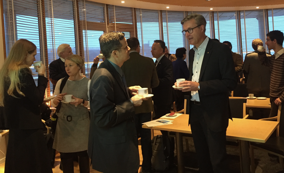 Seminariet fortsatte med en presentation av Christian Finnsgård, projektledare på SSPA, som presenterade en studie om ”slow-steaming logistics” och speditörers förmåga att hantera långsamma transporter.